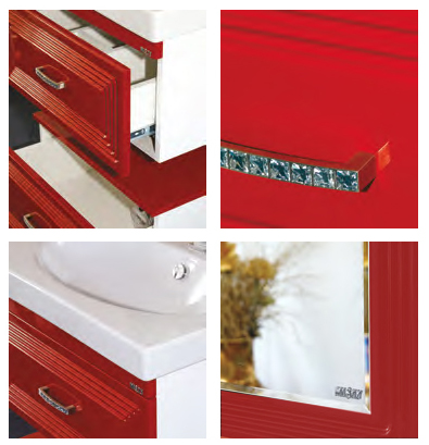 - тумба под раковину: выдвижной ящик, хромированные ручки инкрустированные кристаллами, крепления.