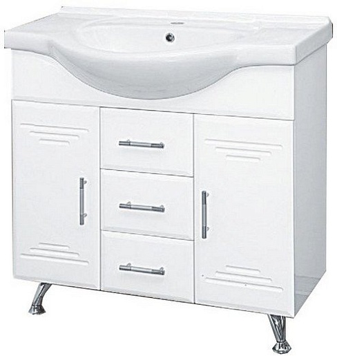 - тумба под раковину Misty Флори 85: ручка - 5 шт., распашная дверца - 2 шт., ящики - 3 шт., корзина для белья