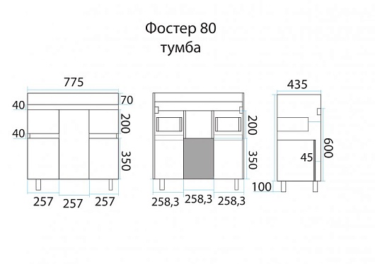 Тумба для умывальника Фостер 80 с 2 ящиками