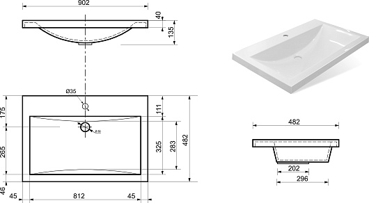 - Раковина из литьевого мрамора со слив-переливом.