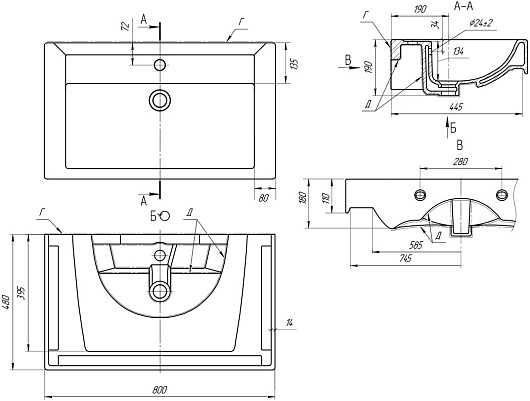 В комплекте: тумба, раковина, ножка (4 шт.), комплект креплений.