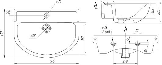 Мебельная раковина Амур 80
