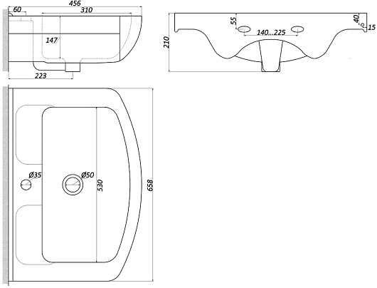 Мебельная раковина Днепрокерамика Изео 65