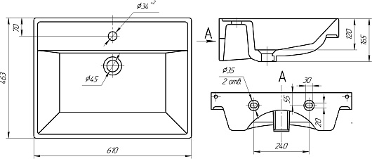 Мебельная раковина Енисей 60