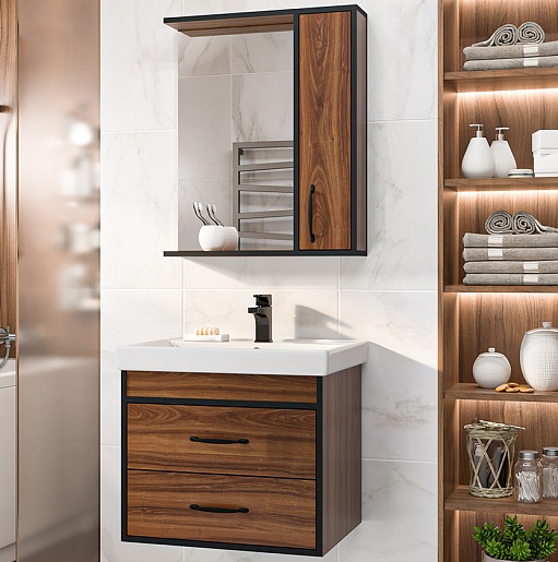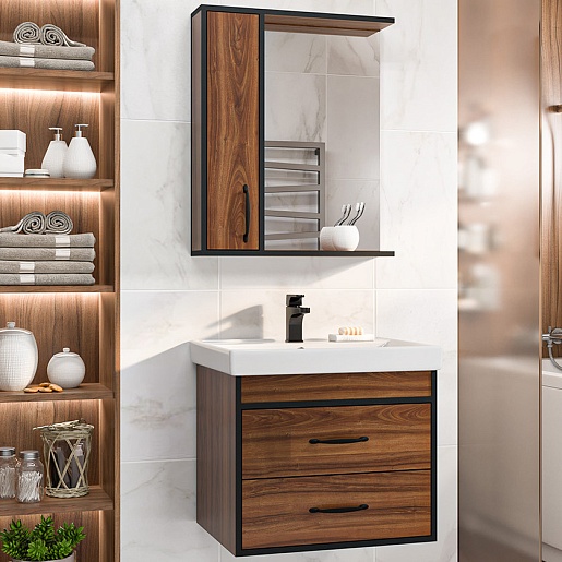 Тумба под раковину Кедр 60 подвесная орех/черная