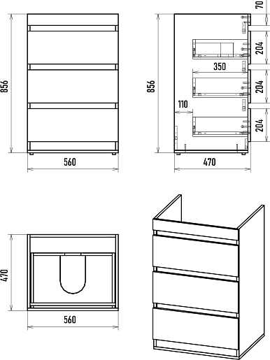 - 3 выдвижных ящика.