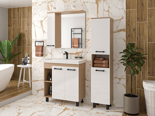 Тумба под раковину Крафт 80 белая/зебрано сахара