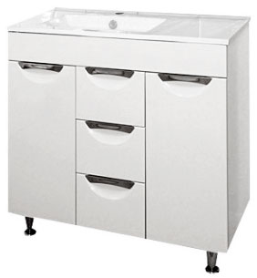 - тумба под раковину Misty Кристи 90 белая: распашная дверца - 2 шт., ручка - 5 шт., выдвижной ящик - 3 шт.
