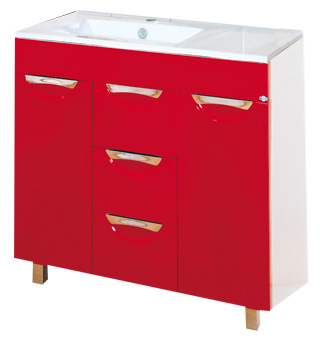 - тумба под раковину Misty Кристи 90 красная: распашная дверца - 2 шт., ручка - 5 шт., выдвижной ящик - 3 шт.