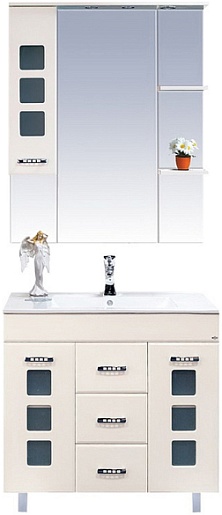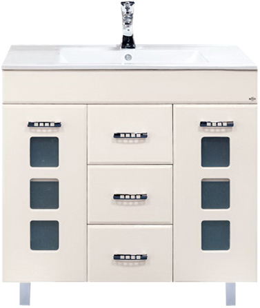 - тумба под раковину: 2 распашные дверцы с вставками матового стекла, 3 выдвижных ящика, 5 металлических ручек, комплект опорных ножек и крепления