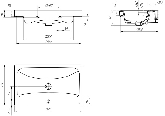Тумба с раковиной Misty Лира 80 - арт. Пр-Лир06080-50 / S-UM-MOD80/1.