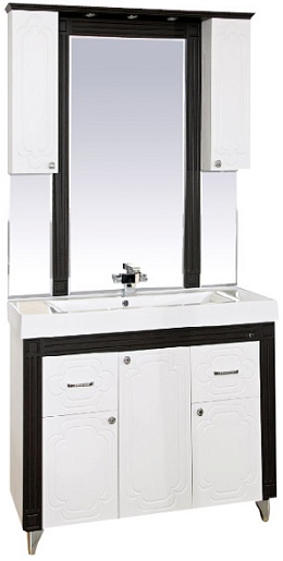 - тумба под раковину: 3 распашных дверцы, 2 выдвижных ящика, 5 металлических ручек с кристаллами, комплект опорных ножек и крепления