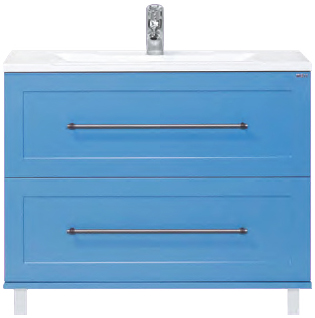 - тумба под раковину: 2 выдвижных ящика, 2 ручки под темное серебро, комплект опорных ножек и крепления