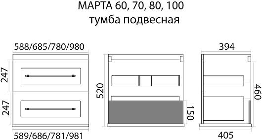 Тумба с раковиной Misty Марта 70 подвесная - арт. П-Мрт-01070-2513П / Р-Евв14070-Д.
