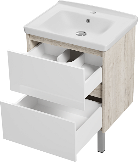 Misty Тумба с раковиной Мускат 60 дуб галифакс белый/белая