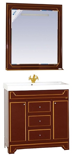 - тумба под раковину: 2 распашные дверцы, 3 выдвижных ящика, хромированные ручки с кристаллом.