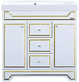 - тумба под раковину: 2 распашные дверцы, 3 выдвижных ящика, хромированные ручки с кристаллом.