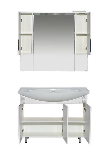 Тумба для умывальника Престиж 105 белая/серебряная патина