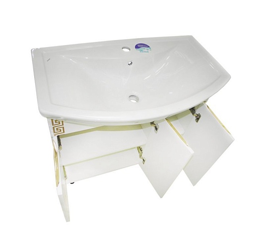 Тумба для умывальника Престиж 105 белая/золотая патина