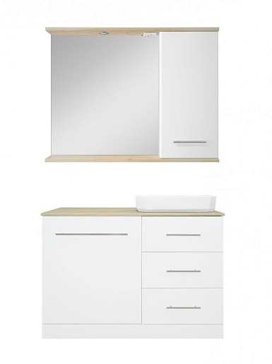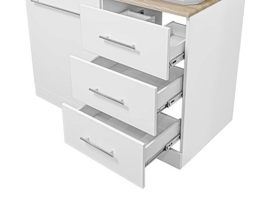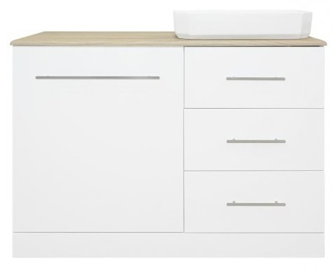 Тумба напольная Респект 120, три ящика, распашной фасад, доводчики, цвет столешницы - дуб тиссано.