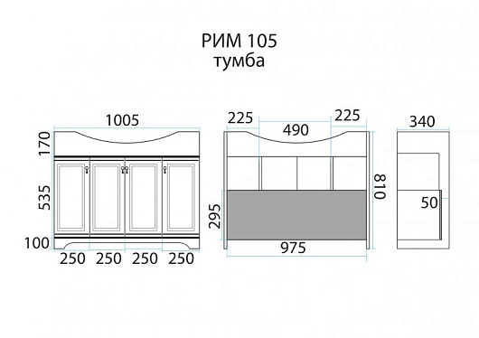 - Рим 105 тумба напольная, четыре распашных фасада, доводчики, фурнитура-бронза.
