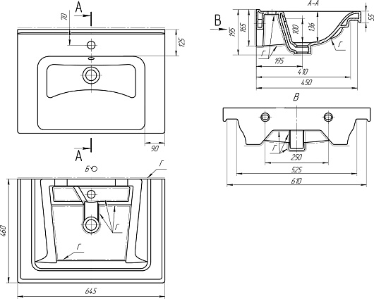 - Керамическая раковина со слив-переливом.