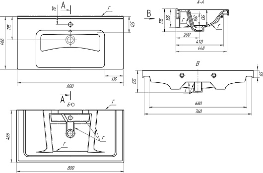 В комплекте: тумба, раковина, ножка (4 шт.), комплект креплений.