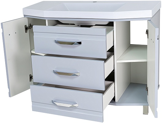В комплекте: тумба, раковина, ножка (4 шт.), комплект креплений.