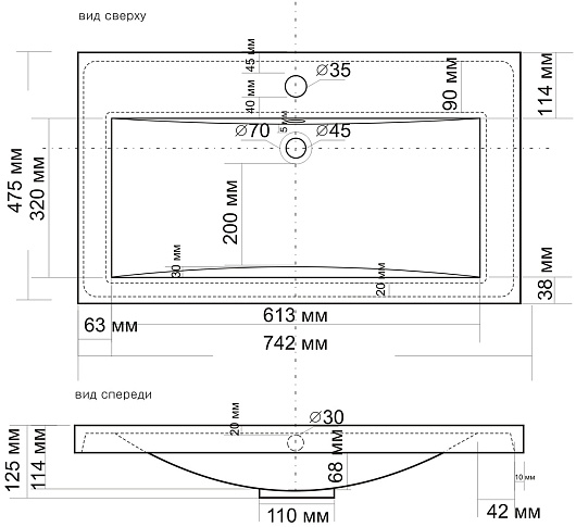 - Раковина из литьевого мрамора со слив-переливом.