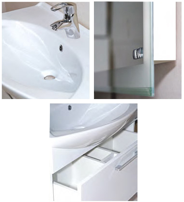 - тумба под раковину: выдвижной ящик, металлическая ручка, крепления.