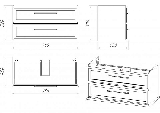 - Винтаж 100 тумба подвесная, два выдвижных фасада, доводчики, фурнитура-бронза.