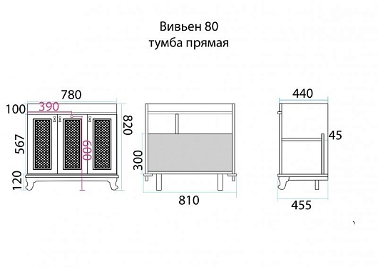 - Вивьен 80 тумба напольная, три распашных фасада, доводчики, фурнитура-бронза.