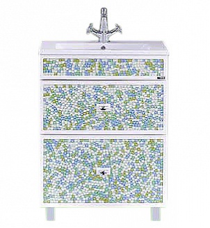 Тумба для умывальника Жемчужина 60 бело-голубая мозаика