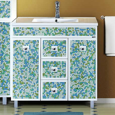 Тумба для умывальника Жемчужина 75 бело-голубая мозаика