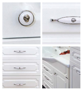 Комплектация: зеркало для ванной комнаты с подсветкой, две открытые полки, шкафчик.