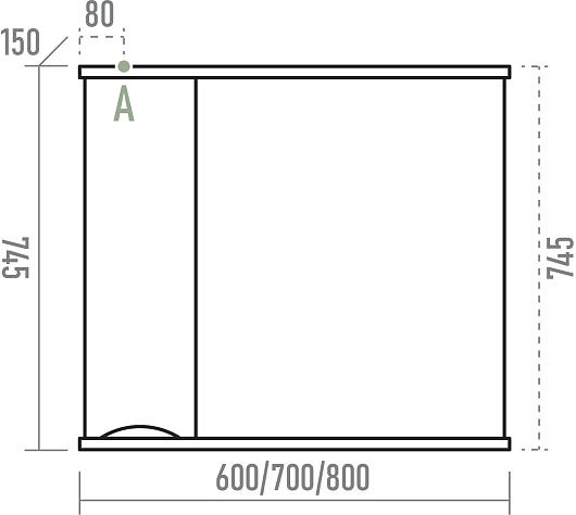 Зеркальный шкаф Misty Атлантик 60 L серый камень - арт. П-Атл-4060-050Л.