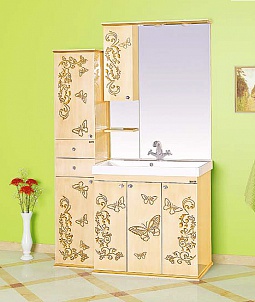 Misty Зеркальный шкаф Бабочка 90 L бежевая патина