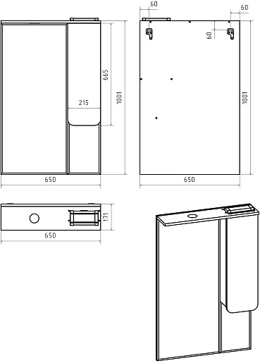 Зеркальный шкаф Misty Чегет 65 R белый - арт. П-Чег-02065-01П.