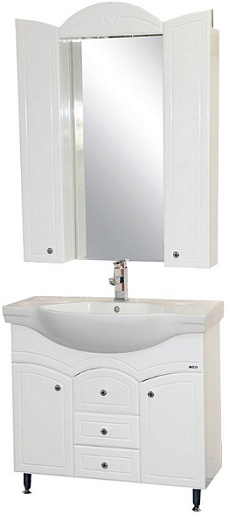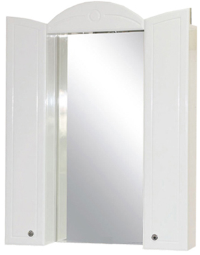 Комплектация: зеркальное полотно, козырек со встроенной подсветкой, распашные шкафчики с вкладными полками.