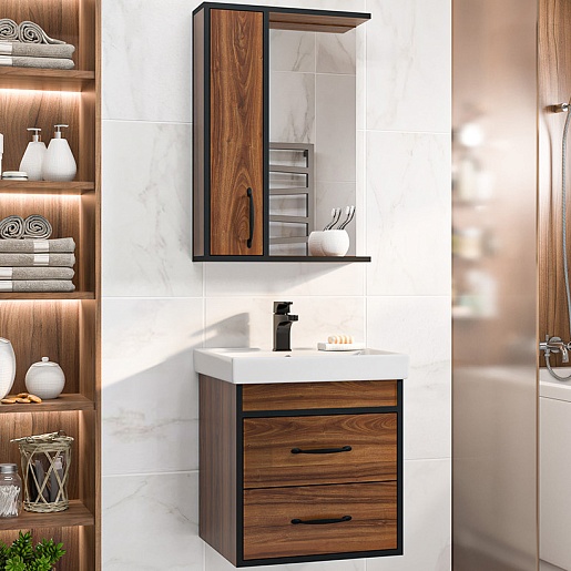 Misty Зеркальный шкаф Кедр 50 L орех/черный