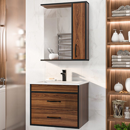 Misty Зеркальный шкаф Кедр 60 R орех/черный