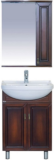 Комплектация: зеркальное полотно, козырек с встроенным светильником, нижняя полка и распашной шкаф с вкладными полками.