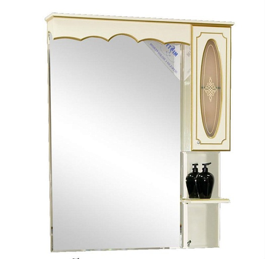 Misty Зеркальный шкаф Монако 90 R бежевый/ патина