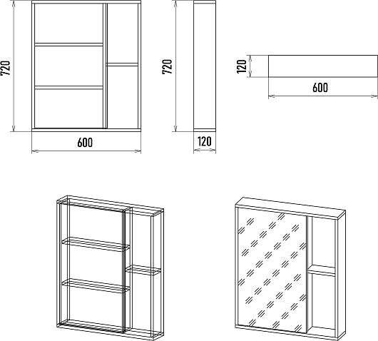- 1 дверца, 2 открытые полки.