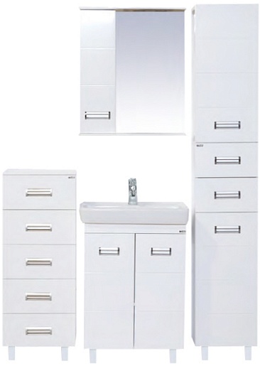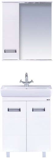 Комплектация: зеркальное полотно с нижней полкой и козырьком со встроенной подсветкой. Распашной шкаф с вкладной полкой.