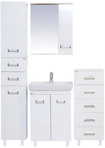 Комплектация: зеркальное полотно с нижней полкой и козырьком со встроенной подсветкой. Распашной шкаф с вкладной полкой.