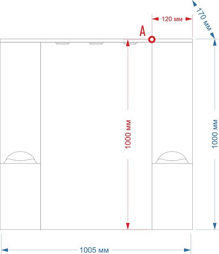 - Размеры (ШхГхВ): 1005х170х1000 мм.