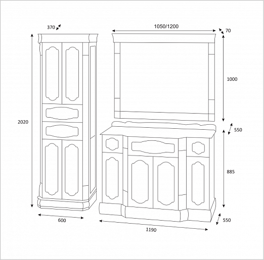 - Размер мебели, мм (ш/г/в) 120х7х100 см