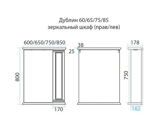 Зеркало для ванной Дублин 60 R, арт. П-Дбл03060-8025П