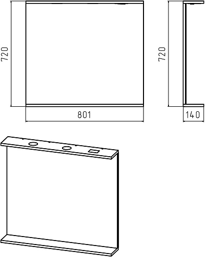 - Размер (ШxВxГ): 800x720x140 мм.